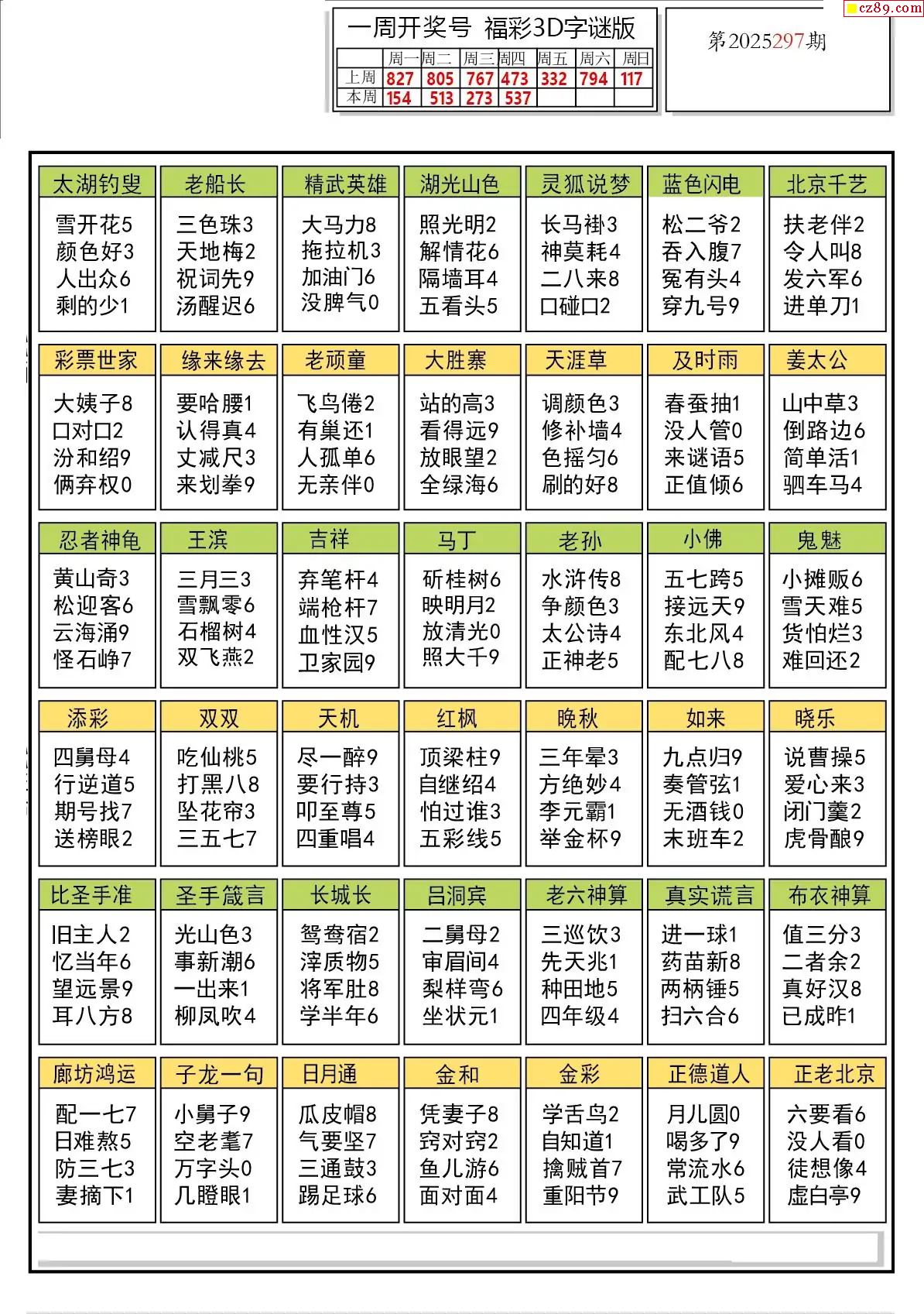 福彩3D2025297期 山上的羊飞鸟胆码图