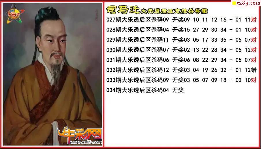 > 大乐透034期司马迁后区定胆杀号图