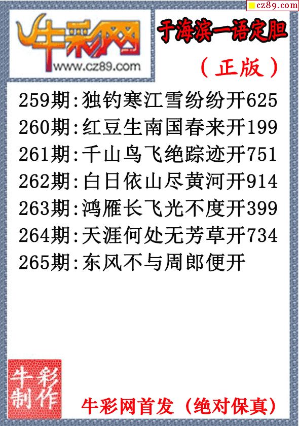 > 25年265期于海滨一语定胆(原创正版)