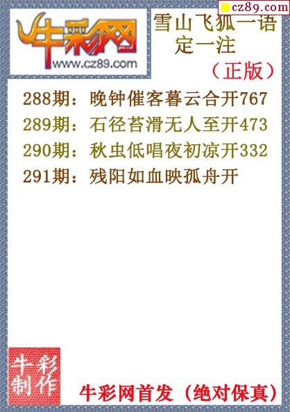 > 25年291期雪山飞狐一语定一注(原创正版)
