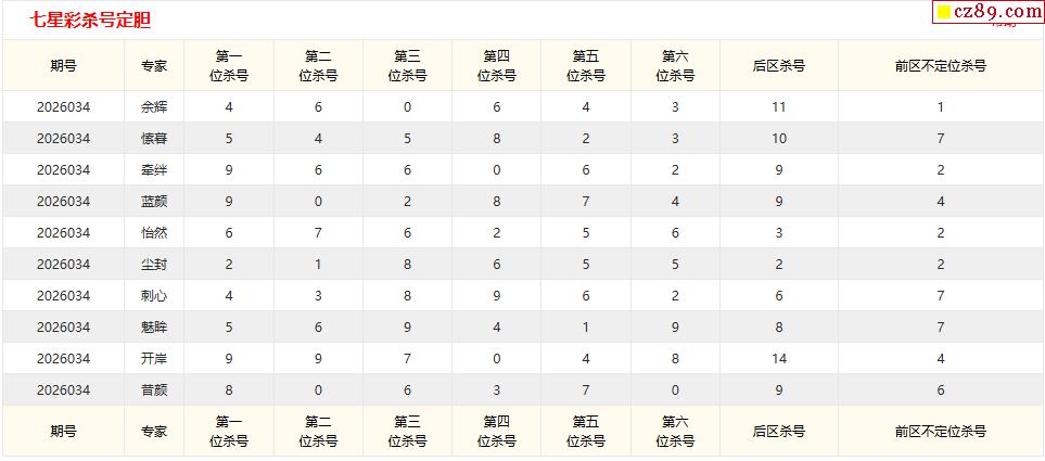 七星彩034期 彩宝贝专家直选杀号预测图表